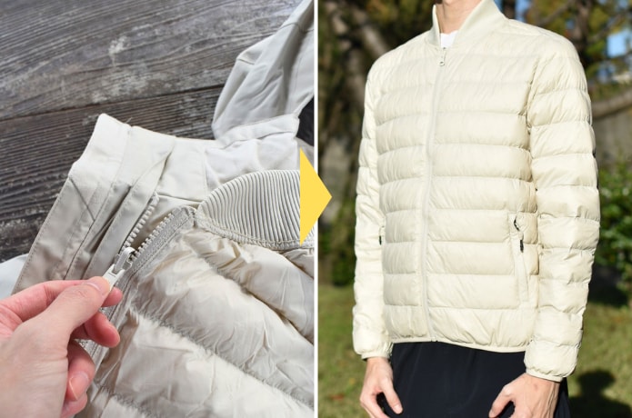 着用してすぐ実感するのが、その「軽さ」とダウンの「ふっくら感」。一般的に550~700フィルパワーが良質なダウンと言われていますが、このジャケットには「800フィルパワー」の高品質ダウンをたっぷり使用。そのため軽量でありながら、高い保温性を実現してくれるんです。