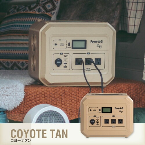 アウトドアギアに馴染みやすいサンドカラーが特徴的なポータブル電源! 600Wh以上のモデルにしては、手に取りやすいリーズナブルな価格が魅力です。家庭用コンセントと同じ「正弦波」であるため、さまざまな家電製品を安心して使用できます。
