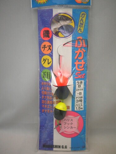 ウキ止め、ウキ、水中ウキ、ハリス、針がセットになったお手軽フカセ仕掛けセット。