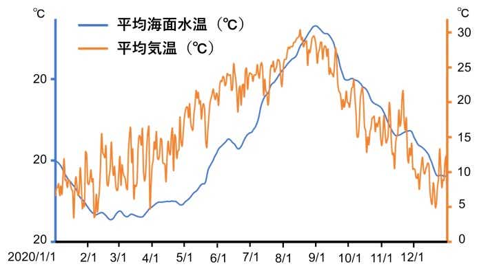 12月ともなると、気温の低下に追いつくようにして海水温もグングン低下。