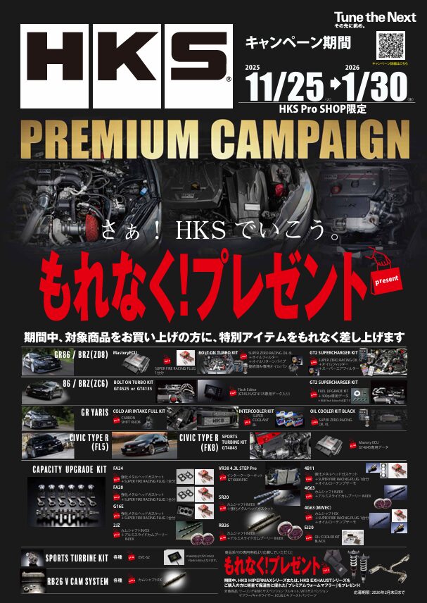 株式会社エッチ・ケー・エス(本社:静岡県富士宮市、代表取締役社長:水口 大輔)は、2025年11月25日より2026年1月30日までの期間、「HKSプレミアムキャンペーン」を開催いたします。