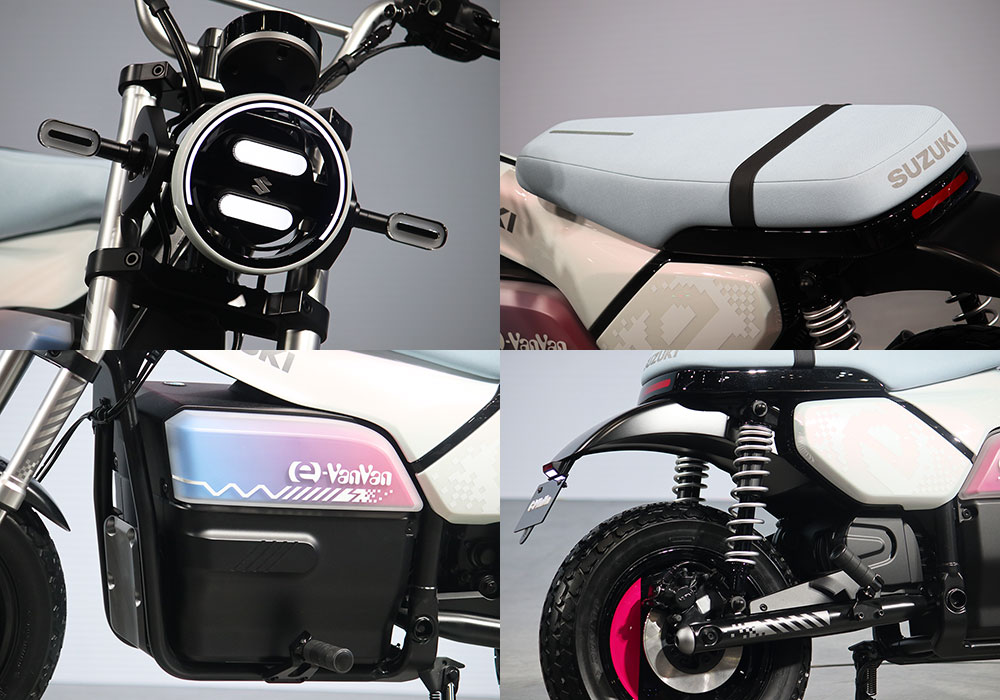 ファットな前後タイヤにタンクレスなスタイリング。これを見て「あっ、バンバンだ!」と思ったベテランライダーも多いのではないでしょうか。1970年代より人気を博したスズキのレジャーバイク「VanVan」をモチーフとしたコンセプトBEV※ファンバイクです。