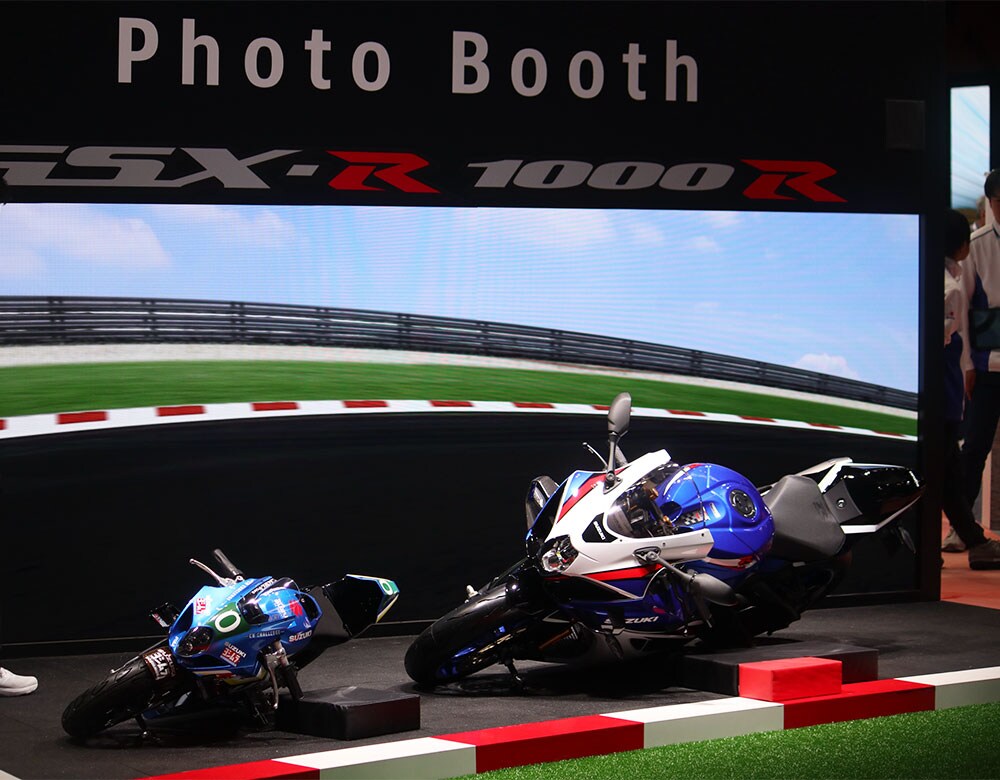 フルバンク状態で撮影できるフォトスポットに展示されたのは、今年の鈴鹿8耐で発表されたばかりの新型スーパースポーツモデル「GSX-R1000R」です。現行モデルをベースにエンジンや電子制御系を大幅に改良したバイクで、「チームスズキCNチャレンジ」のファクトリーマシンと同じ形状のウイングレットをオプション採用している点も見どころです。燃料タンク上とサイドカウルに「40th ANNIVERSARY」のデカールがあり、これは1985年に海外を含めて発売された「GSX-R750」の登場から40周年であることを意味します。2026年度内の販売開始を目指しているとのことで、今から発表が楽しみです。