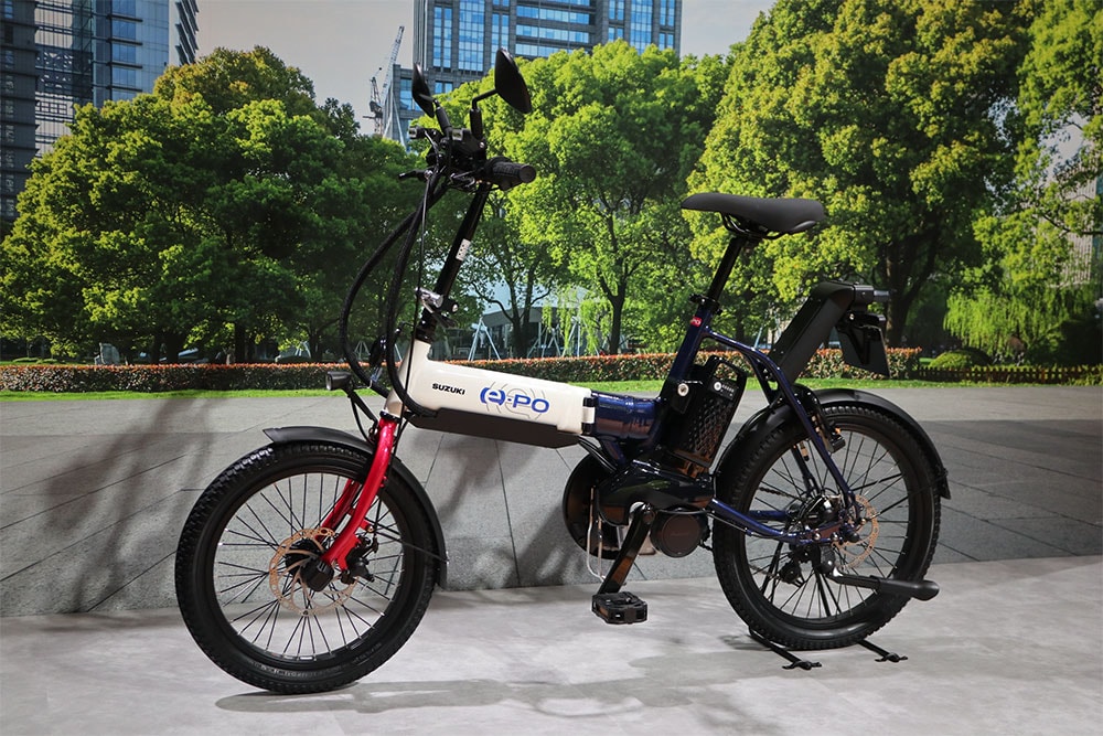 前回2023年のモビショーでも参考出品された原付一種相当のモビリティ、それが「e-PO」(イーポ)です。電動アシスト自転車とEVバイクを掛け合わせた新ジャンルのコミューターで、ペダルを漕ぐことで得られる強力なアシスト走行に加え、スロットル操作のみでも移動できるのが大きなポイントです。今回のモビショーで展示された車両は、リアブレーキのディスク化や前後のフェンダー形状の変更、新作フレームの採用など、市販化に向けてアップデートを施したもので、車体色もスズキのイメージカラーとなっていました。2026年度内の販売開始を目指しているとのことで、その日が来るのが待ち遠しいですね。