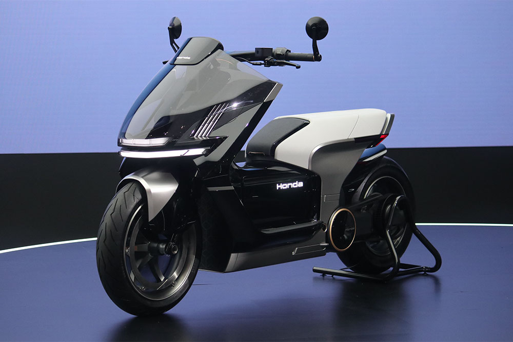 ホンダのブースで注目を集めていたのが、電動二輪のコンセプトモデル「EV OUTLIER CONCEPT」です。Outlierとは“枠にとらわれない存在”という意味で、従来の内燃機関モデルの延長ではなく、電動だからこそ実現できる新しい価値を追求するためにこのコンセプトモデルを立ち上げました。キーワードは「Gliding」「Ecstasy」「Low」の3つで、前後のホイールにそれぞれインホイールモーターを搭載し、電動ならではの圧倒的な加速力を実現するモビリティとのことです。EVバイクの新たな可能性を示した1台と言えるでしょう。