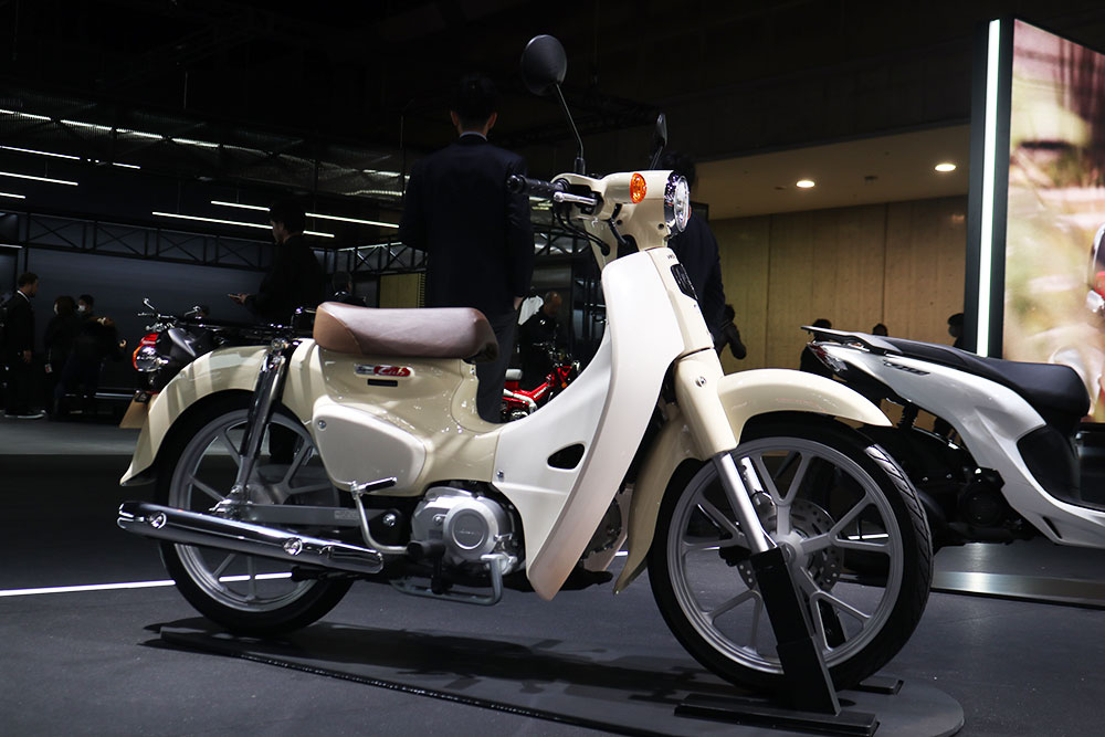 同じく「新基準原付」に適合したスクーター「Dio110 Lite」も展示されました。排気量は109ccのまま、最高出力を3.7kW(5.0PS)に抑えています。外観は原付二種の「Dio110」とほぼ共通ですが、タンデムステップが省略されているほか、スピードメーターの時速上限が60km/h(速度警告灯付き)となるなど、「原付一種」に合わせた設定となっています。