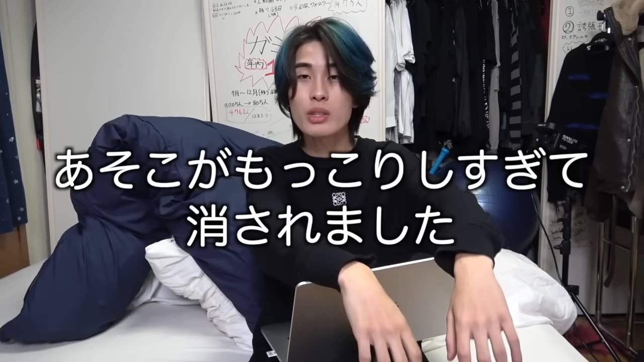 その約4時間後、ガミックスは「動画が消された件について【24時間企画#3】」と題した動画を投稿。1本目に投稿した動画が削除されたと報告するとともに、その理由について