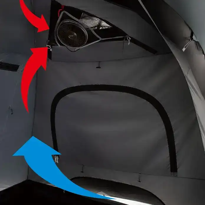 他にも、別売りのファンを装着できるようになっており、ファン稼働時には体感温度-5度を実現。4〜5人がゆったりと過ごせるサイズで、夏用のファミリーテントを探している方には有力な選択肢になるでしょう。