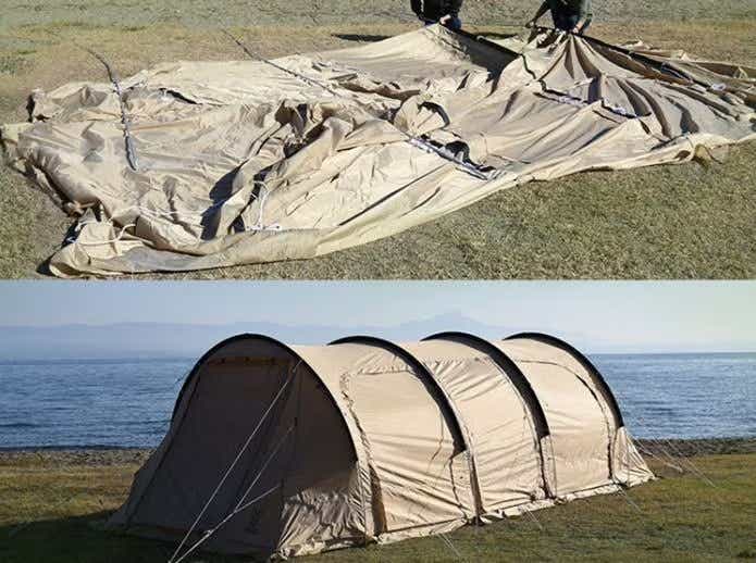 - 寝室とリビングを一度に建てられる。設営方法自体はシンプル