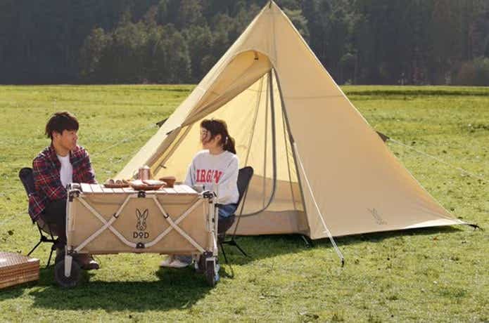 斬新でおしゃれな見た目と使いやすさで、発売以来高い人気を集めているDOD の「カマボコテント」。大人が10人が入れる大きなリビングルームが魅力で、家族でゆったり使えることはもちろん、グループキャンプにも最適です。