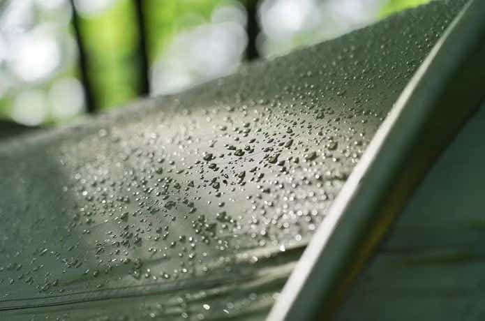 テントを購入する際に重視したい判断基準の1つが、生地の「耐水圧」。耐水圧とはテントが水にどれだけ強いかという指標なのですが、一般的に傘の耐水圧は200〜500mm程度、レインウエアは2,000mm以上と言われています。