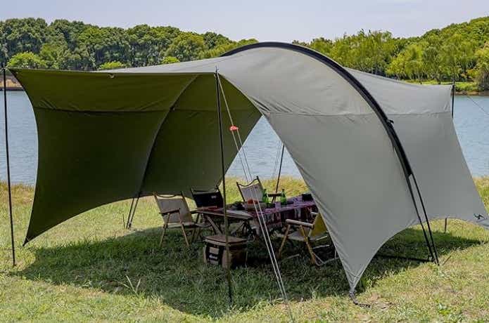 テントのような形状をしているため、デイキャンプや過保護張りにもぴったり。プライバシー感が少ないタープとしては珍しく視線を遮ってくれるのも魅力です。