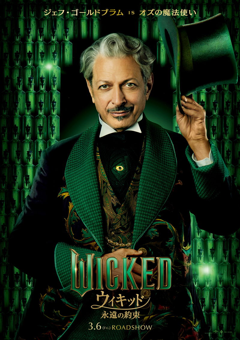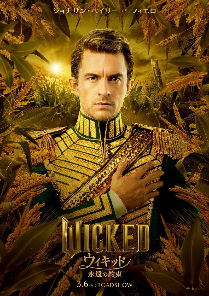 ホウキを片手に、漆黒の衣装に身を包むエルファバ。“悪い魔女”のレッテルを張られながらも、自らの信念に従い、オズの魔法使いに支配された世界を正そうと奮闘する彼女の姿は、力強い決意に満ちあふれている。そして玉虫色のドレスに身を包み、ティアラにそっと手を沿える“善い魔女”グリンダ。希望の象徴として望まれる優しさを人々に与える彼女からは凛とした大人の表情がうかがえ、前作とは一味違った魅力を放つ。固い絆で結ばれながらもたもとを分かち、正反対の道を歩むことになったふたりの魔女のコントラストが表現されたビジュアルとなっている。