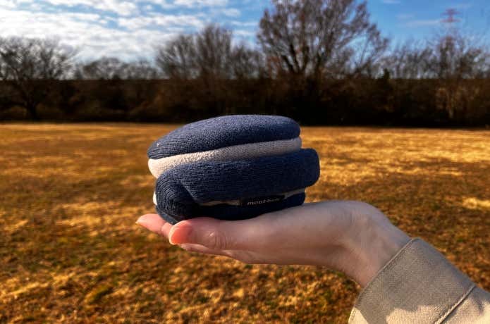 続いて登場するのは、気の利いたアイテムが多数そろうモンベルのカチューシャタイプのイヤーウォーマー。パッと装着できる手軽さとコロンとしたまるいフォルムが魅力です。