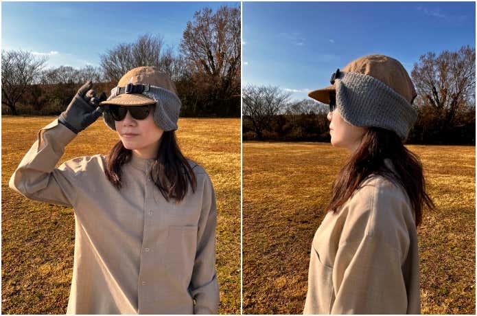 イヤーマフバンド単体だけでなく、キャップの上からも使用可能。状況に応じてキャップと併用できる点も使い勝手の良さと言えます。