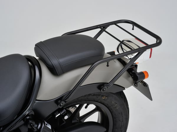 キャリアがあればその上に直接荷物を固定できるので、ツーリング時の利便性がグッとアップします。メーカー純正品をはじめ、アフターパーツメーカーから各モデル専用キャリアや汎用型キャリアが展開されているので、「車両名 キャリア」で検索するなどして自分のバイクに合ったキャリアを探してみましょう。