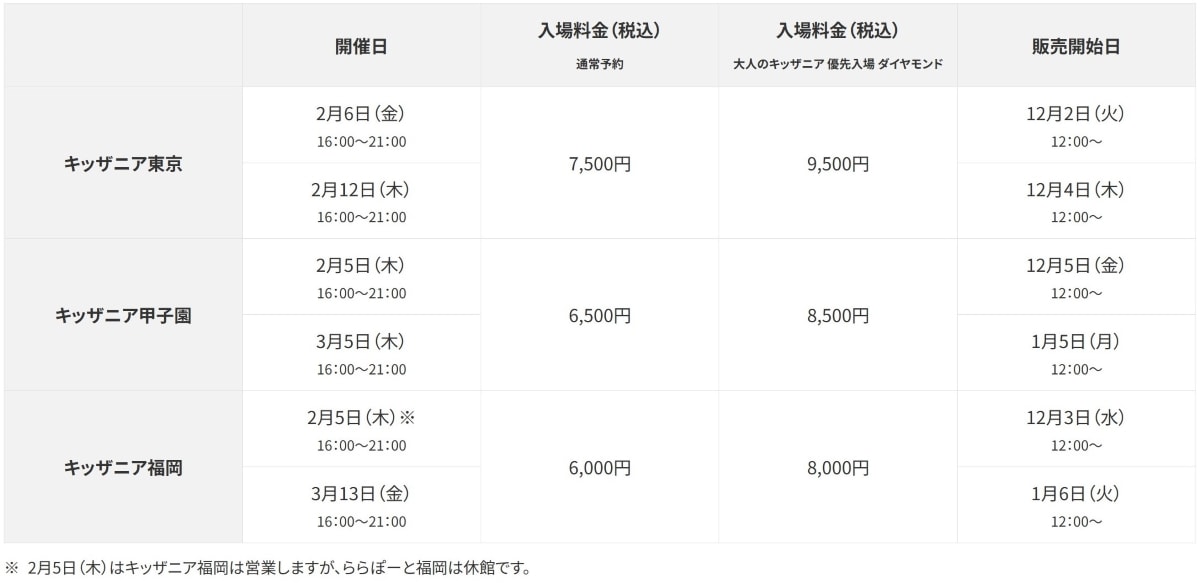 ※2月5日はららぽーと福岡が休館ですが、キッザニアは営業します。