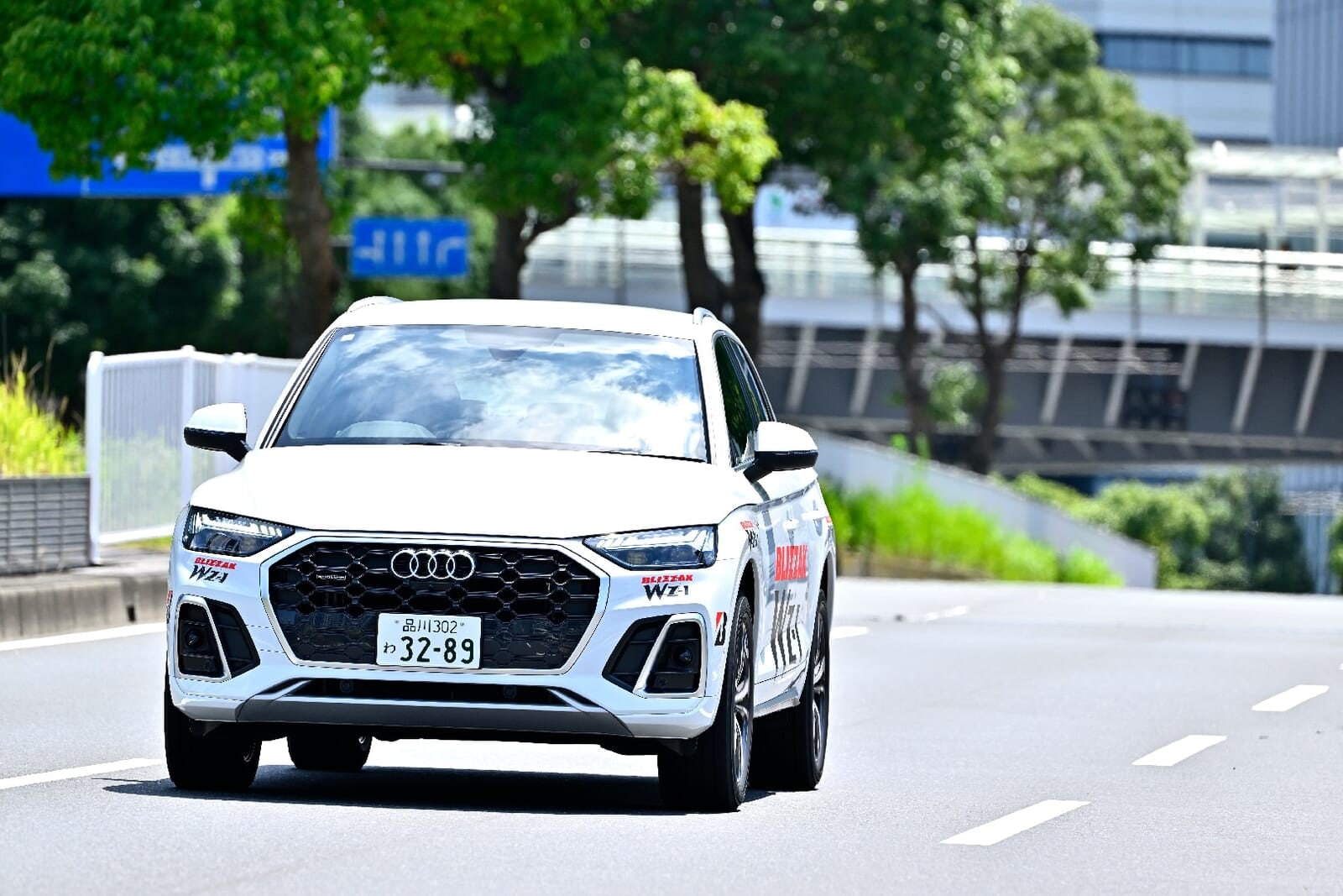 続いてドライの高速道路などをアウディ Q5(235/55R19 101Q)で走らせることができた。乗り始めるとやはり非常にコンフォート性が高いタイヤという印象で、ロードノイズも静かで転がり抵抗も少なく感じた。一方で70km/h以上の速度域になってくると徐々にタイヤの表面の固さが気になってくると同時に、直進安定性がいまひとつで、常にステアリングの修正舵が必要になってきた。エンジニアもこれは確認しており、原因はわからないもののステアリングの入力に対してシビアな挙動を示すクルマだとこういった挙動が出やすいとのこと。時機を見て改めて他のクルマでもテストをしてみたい。