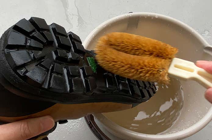 アッパーと違ってソールはしっかり、ブラシなどを使ってゴシゴシ洗います。しっかりと洗い流しましょう。