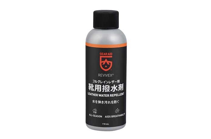皮革製アウトドア・シューズ用の撥水剤。ミネラルオイルが配合されており、コンディションニング効果も。