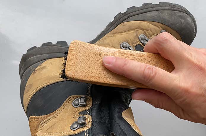 ブラシで強くこすることは繊維を傷つけ、撥水性能など、本来登山靴が持っている機能を損ねてしまいます。