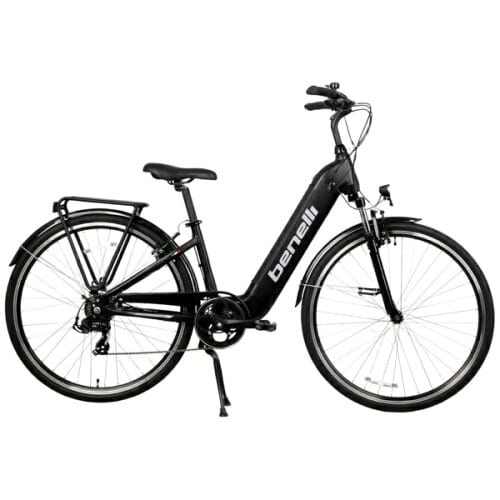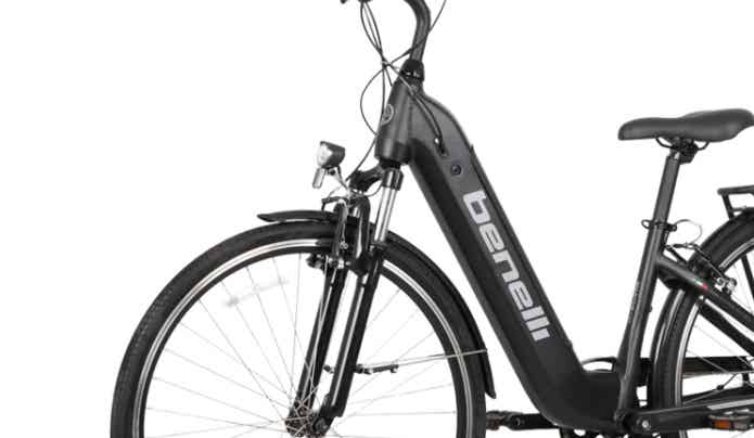 イタリアのオートバイブランドであるベネリが電動クロスバイクを作るとこうなります。バッテリーはフレーム内に収納、極太なダウンチューブがデザインの大きなアクセントになっています。
