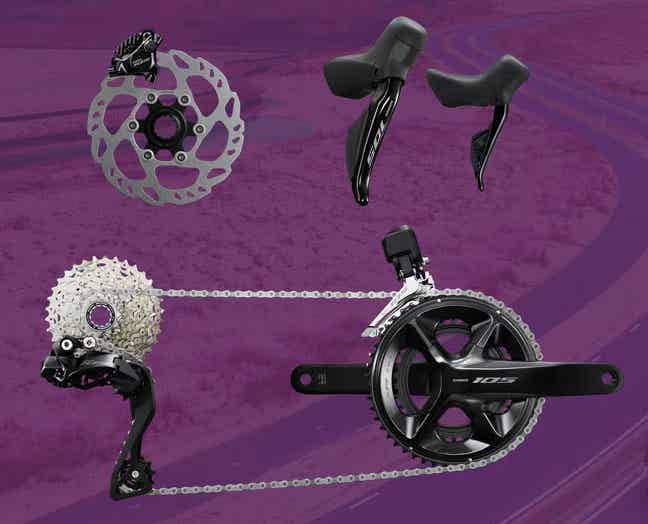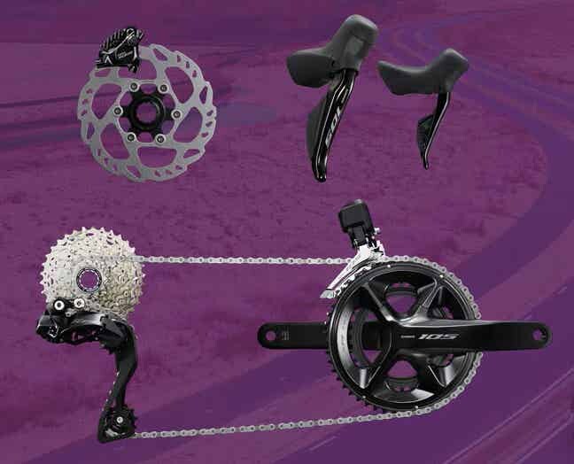 105のラインナップは2パターンで、ブレーキは油圧ディスクのみで変速段数は2×12速で共通、電動変速と機械式変速を選べるのが特徴です。レース向けのリア12速コンポとしては唯一機械式変速を選べるため、予算を抑えつつ高性能なロードバイクを組みたい方におすすめ。