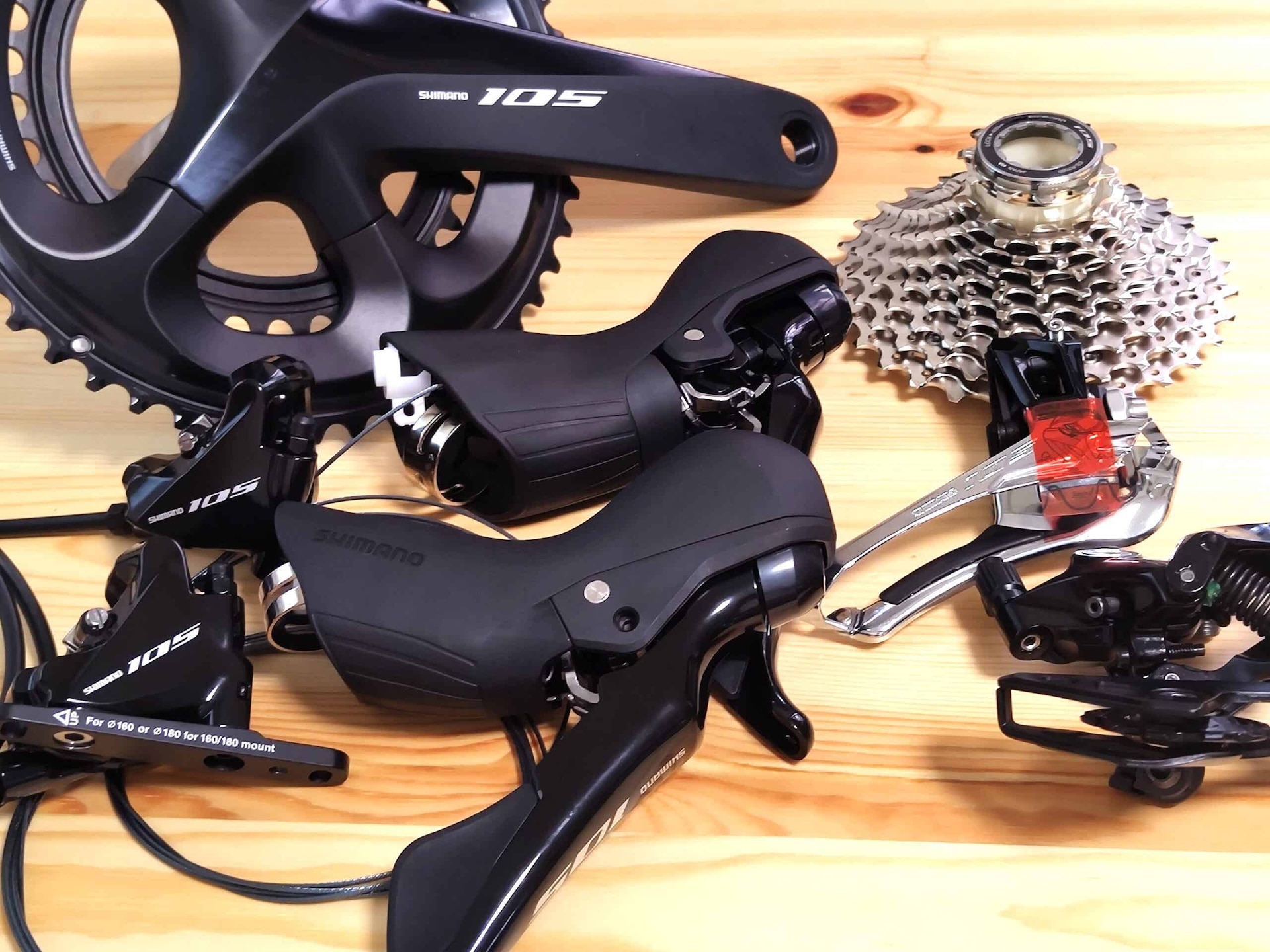 条件が同じ機械式変速/油圧ディスクブレーキで比較すると、グループセットでの重量差が約100gあります。価格差は1万円強なので、同じ条件なら重量が軽く変速段数が多い105の方がお得感があります。