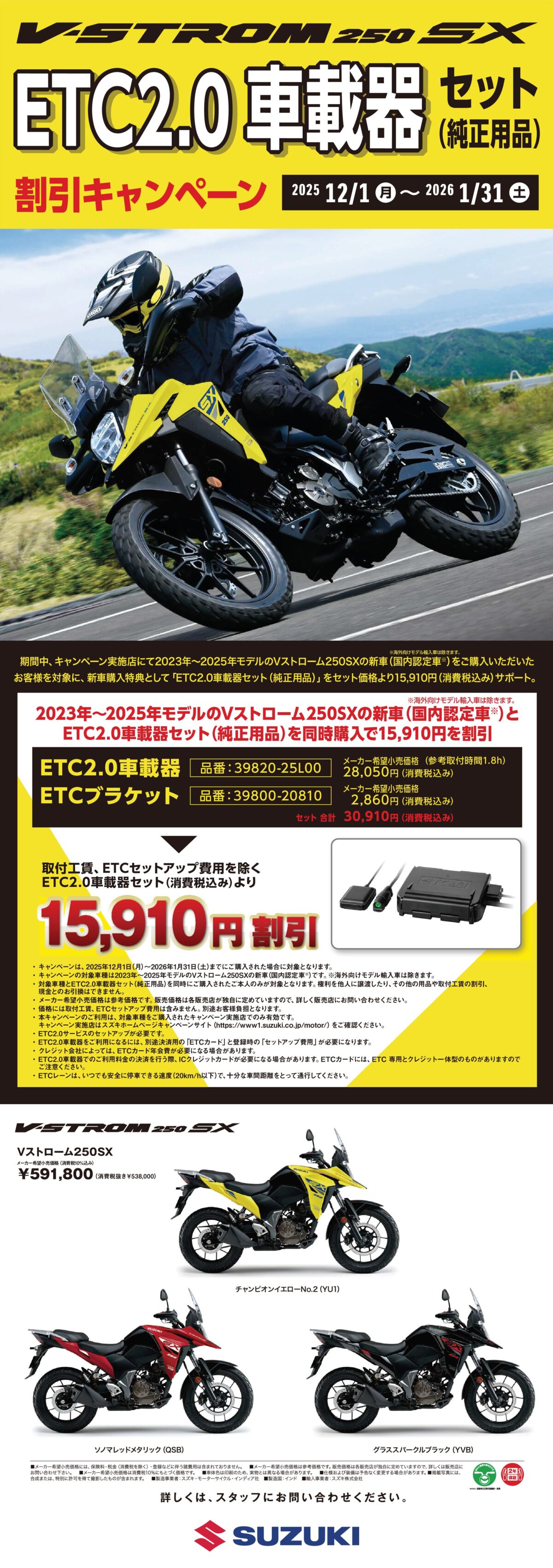 ・キャンペーン名: Vストローム250SX ETC 2.0車載器セット割引キャンペーン