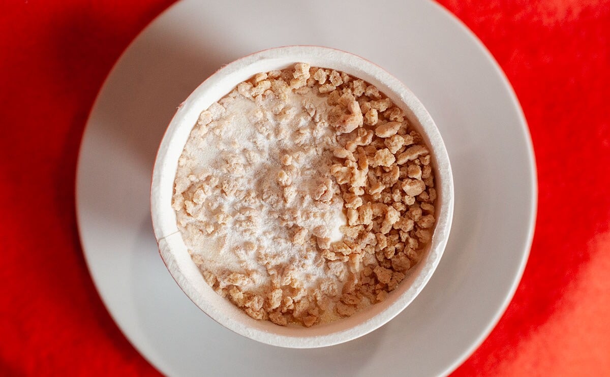 粉糖の量がかなり多いようで、思ったよりも白くなっています。クッキークランチもごろごろ入っていて、テンションがあがりますね。