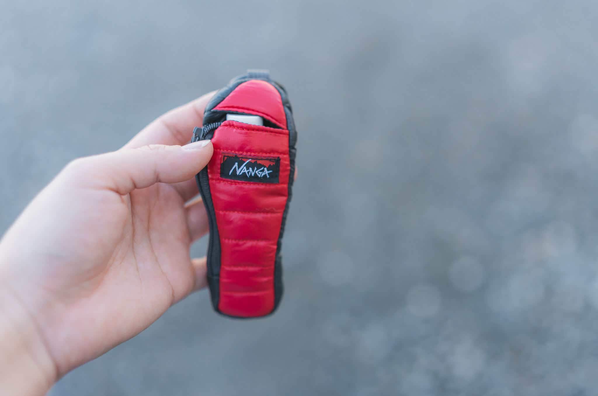 見た目は本物の寝袋をそのまま縮小したようなルックスで、ロゴ・ステッチの入り方まで“完全にNANGA”。ブランドの遊び心がギュッと詰まった、所有欲をくすぐるデザインです。