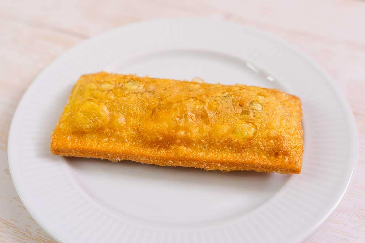 お皿の上に出してみました。「ホットアップルパイ」と同じような形ですね。