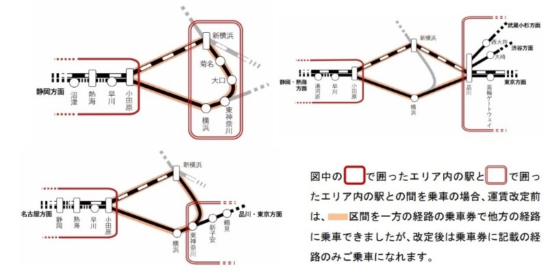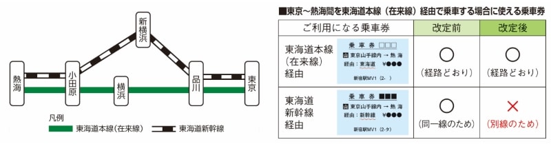 また、東京駅~熱海駅間における東海道新幹線と在来線の運賃計算を別々に行う「別線化」や、JR他社にまたがって利用する際の「通算加算方式」の導入など、利用方法に関わる変更が含まれています。