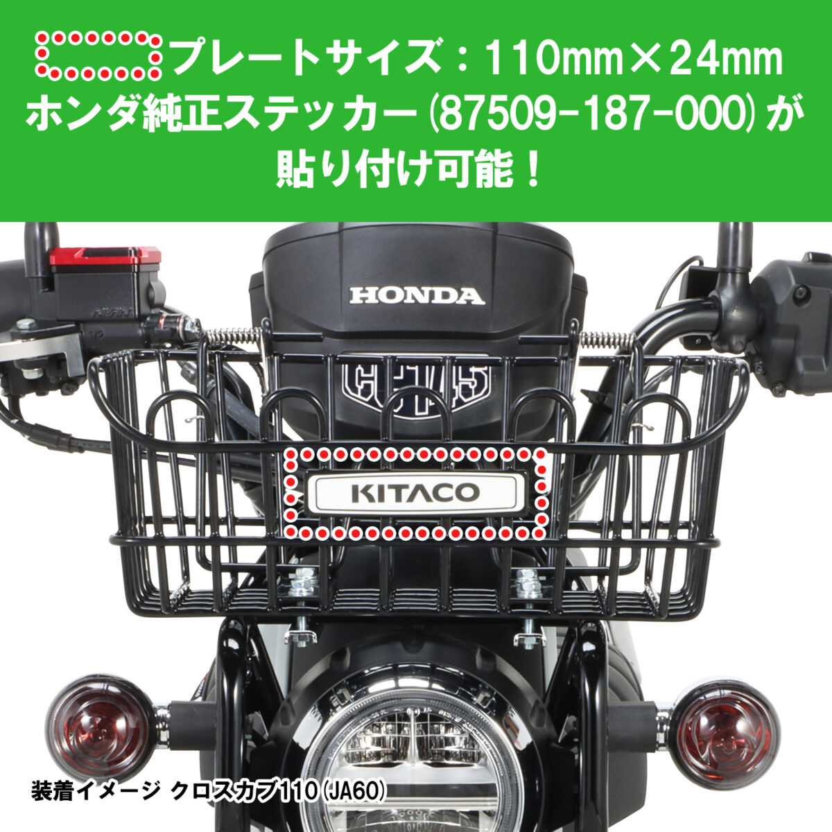 クロスカブ50(AA06)/クロスカブ110(JA45/JA60)に取り付け出来るように低背仕様のフロントバスケットを設定しました。