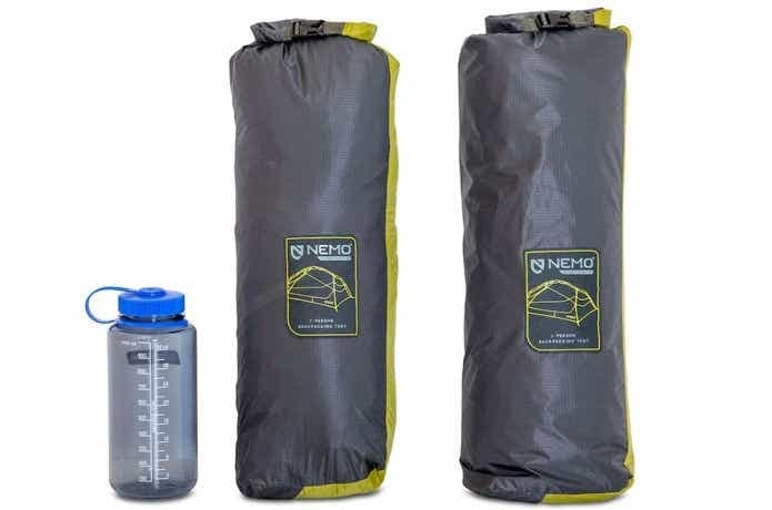 ロールトップ式の収納ケースは防水性があるので、濡れたテントを入れても水が滲み出てこないので安心です。携帯性と居住性どちらも諦められない場合は有力な選択肢になるでしょう。