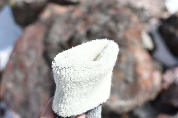 実際にテストをしてみたところ、確かに多くの汗をかいたときには、インナー靴下を履いていたほうが濡れを感じさせませんでした。濡れの問題がよりシビアな極寒地の高山登山の際に履くと安心です。
