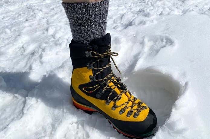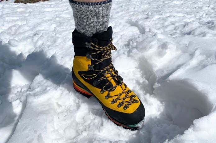 同じ冬山向け登山靴の中でも、保温材の種類や構造によって保温性を特に高めたモデルから抑えめなモデルまで様々なため、靴に合わせた靴下選びも一つのポイントです。