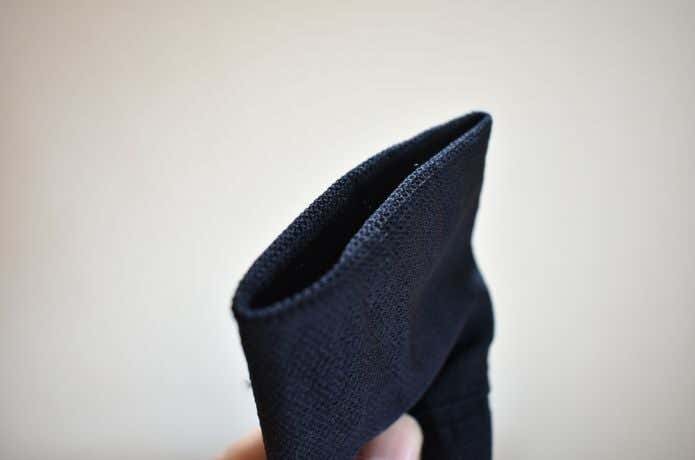 パイル生地がやや薄いことから、保温性、クッション性についてはスマートウールやフィット、モンベルと比較すると若干劣ります。またつま先部分に縫製がされているため、指先を(あえて)動かすと若干あたりが気になりました。もっと履き込めば柔らかくなりそうです。