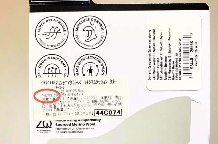 一方で耐久性はあまり高くないため、化繊をブレンドして耐久性を高めている靴下が一般的です。冬山・雪山向けに販売されている靴下には60〜70%ほどウールが含まれている商品が多いため、購入する際は同じくらいウールが含まれているかをチェックすると良いでしょう。