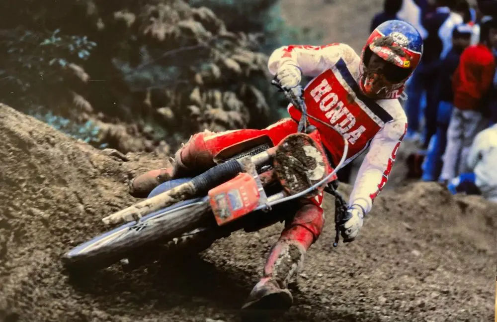 2人兄弟で育ったという東福寺さん、近所にモトクロスチームを率いる12歳差の叔父が住んでいたことがモトクロスバイクへの興味を持つきっかけだったそうです。ヘッドライトがないバイクがたくさん並んでいて、土曜日になるとバイクの音が鳴り響き、そして日曜になるとそのバイクが一台もなくなってしまうという光景が日常でした。