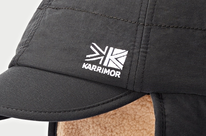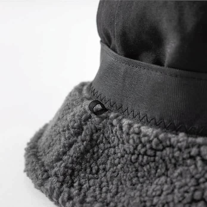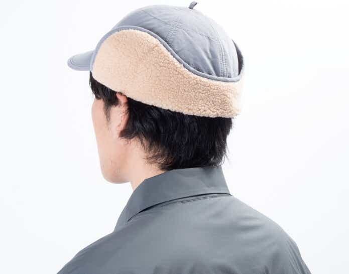 撥水加工を施したナイロンと、厚手で暖かなフリースを表裏で使い分けたキャップ。