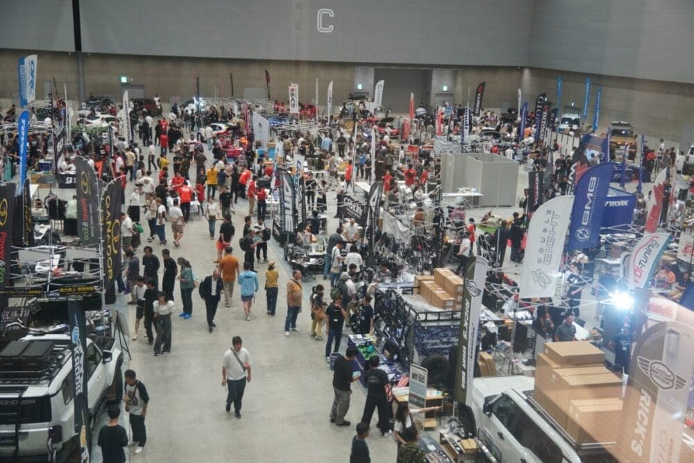 展示・即売を行うパーツメーカーは過去最多となる90社超。会場内はデモカー、パーツ、グッズ、アウトドア用品など多彩なコンテンツで埋め尽くされ、来場者たちは気になる製品に直接触れたり、メーカー担当者に話を聞いたりしながら、思い思いのクルマの楽しみ方を見つけていた。