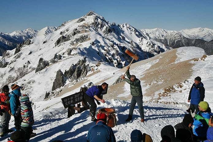 東京にある唯一の日本百名山、雲取山。その山頂直下にある雲取山荘は通年営業で、年末には、カウントダウンと闇鍋が、年始にはお餅つきが行われ、つきたてのお餅を頂くことができます。