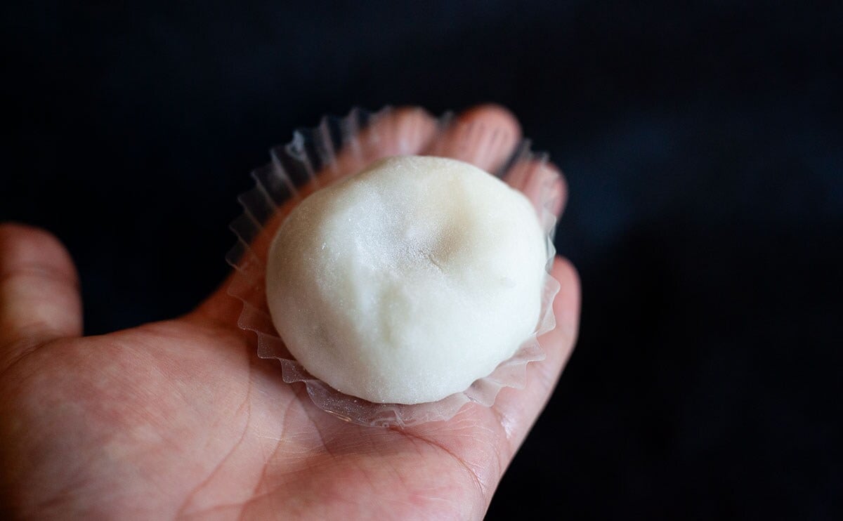 大きさは一般的な大福と変わりませんが、ずっしりと重みがありますね。また、見た目も変わったところはなしです。