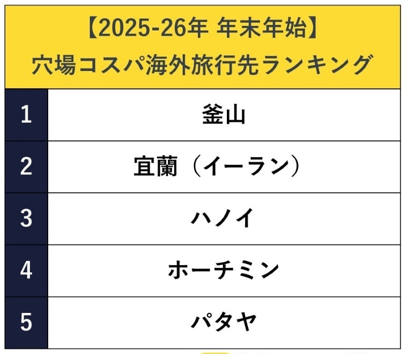 ■穴場コスパ海外旅行先ランキング(Expedia情報)