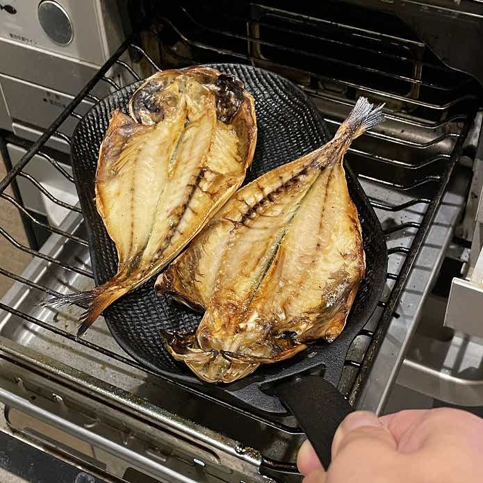 鋳鉄製のグリルプレートなので、魚をひっくり返さなくても底面までしっかり火が通り美味しく焼けるんです。 魚焼きグリルとしてだけでなく、焚き火や炭火などの直火、オーブン、トースターなどにも使えるので、家でもキャンプでも重宝しています。