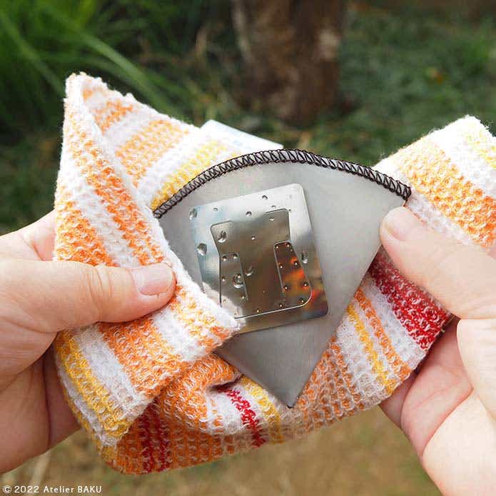 手入れも簡単で、フィルターに残った粉を捨て、食器用洗剤と流水でサッと流し、しっかりと乾かします。 収納袋は付属しないので、チャック付き袋などに入れて持ち歩いています。