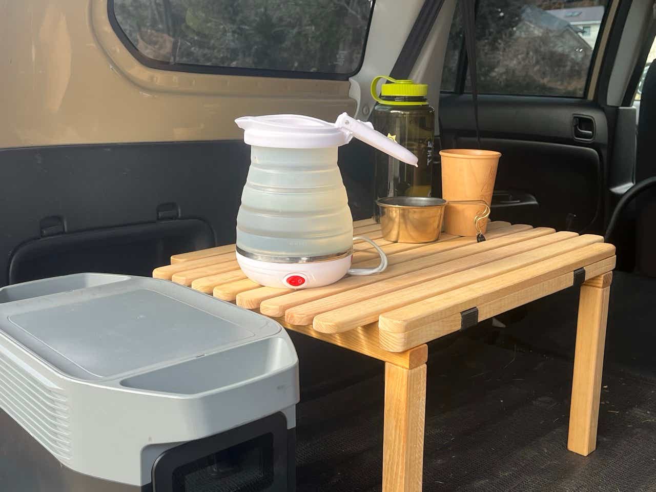 たしかに、電子ケトルなら一酸化炭素中毒の危険がなく手軽にお湯が作れて、カップ麺やコーヒーなど車内でゆっくり味わえますね!