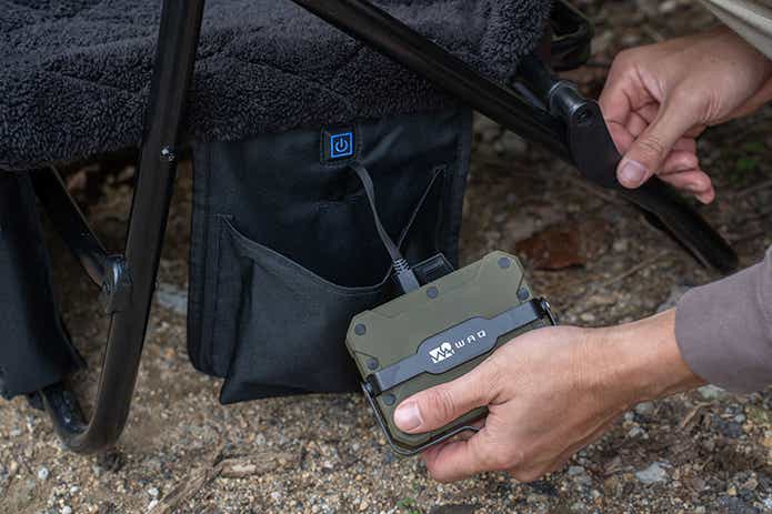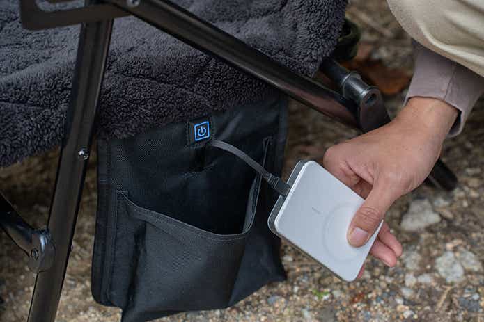 モバイルバッテリーと組み合わせれば、焚き火の前でも、朝晩の冷え込みにも、チェアを“暖房席”に早変わりさせてくれます。