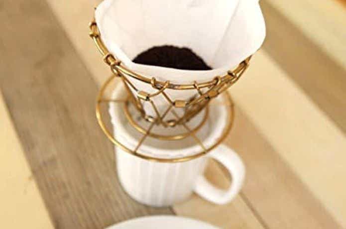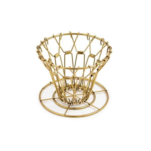 キッカーランド「ブラスコラプシブルコーヒードリッパー」は、使わない時はコンパクトに折りたためる真鍮製の携帯コーヒードリッパー。アンティーク調の美しい真鍮の輝きが特徴で、使い込むほどに味わい深い経年変化を楽しめます。折りたたみ時はとてもコンパクトになり、バックパックのポケットにも余裕で収まるサイズ感です。